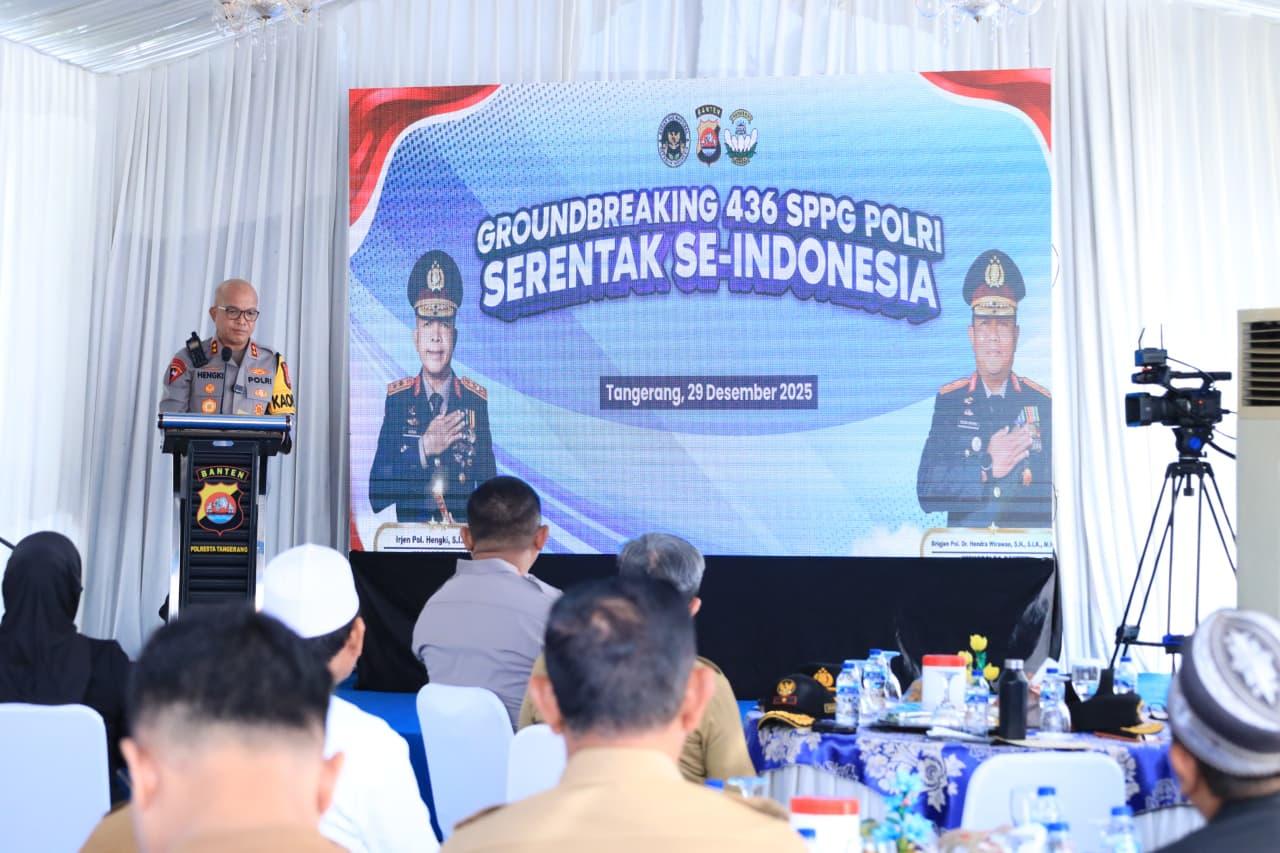 MPI, TANGERANG – Kapolda Banten Irjen Pol. Hengki memimpin kegiatan groundbreaking pembangunan 49 Satuan Pelayanan Pemenuhan Gizi (SPPG) Polda Banten dan jajaran yang dilaksanakan di SPPG Pasar kemis Polda Banten, Kp. Pasar kemis, RT 002 RW 001, Desa Pasar kemis, Kecamatan Pasar kemis, Kabupaten Tangerang, Senin (29/12/2025).