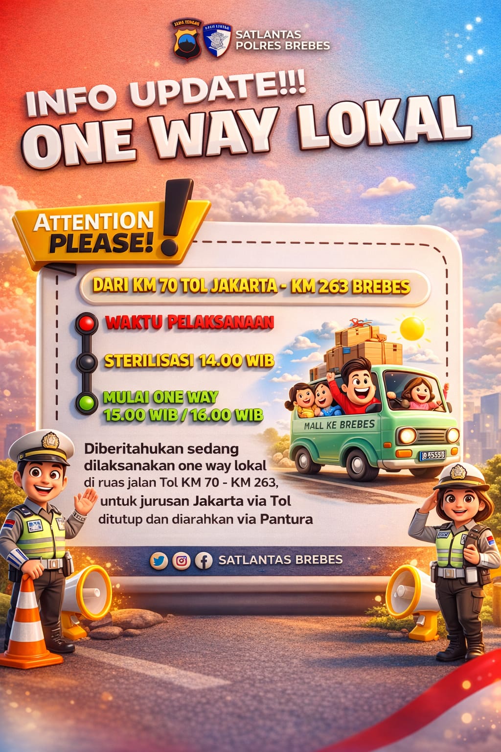 Selanjutnya, penerapan one way akan resmi diberlakukan pada pukul 15.00 WIB.
