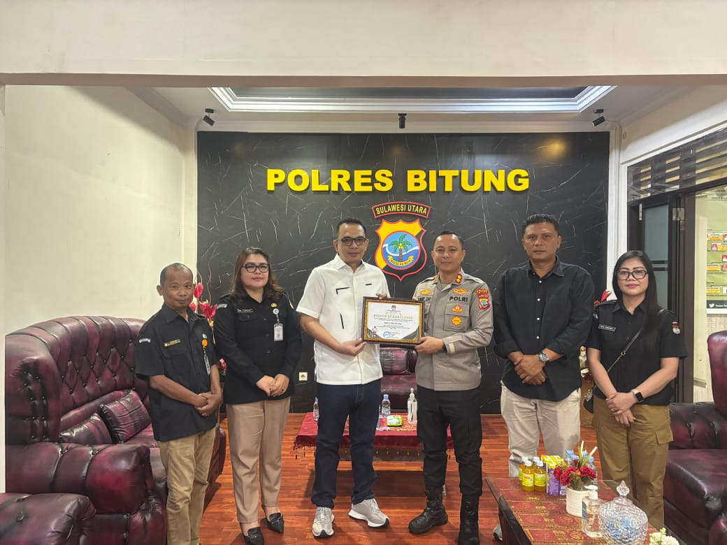 Piagam penghargaan itu diserahkan langsung oleh Ketua KPU Kota Bitung, Deslie Sumampouw, SE, didampingi Komisioner Frangky Takasiaeng, Sekretaris KPU Poula Tuturoong, SE., MAP, serta staf KPU lainnya. Penyerahan berlangsung di ruang kerja Kapolres, dalam suasana hangat penuh kebersamaan.