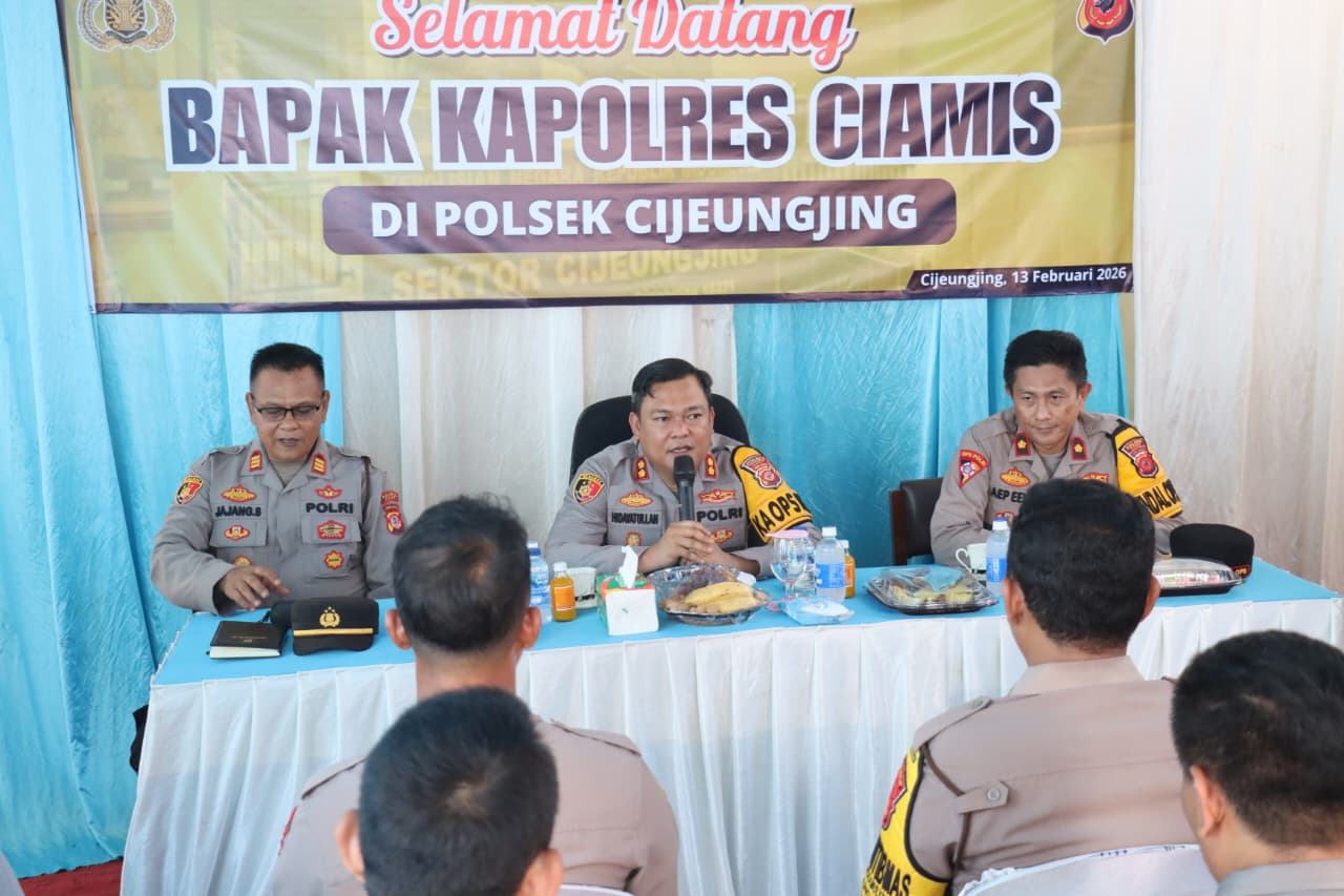 MPI, Ciamis Jabar – Kapolres Ciamis AKBP H. Hidayatullah, S.H., S.I.K. bersama Ketua Bhayangkari Cabang Ciamis, Ny. Mildha Hidayatullah, melaksanakan kunjungan kerja ke Polsek jajaran Polres Ciamis. Kegiatan yang berlangsung mulai pukul 09.00 hingga 17.30 WIB ini bertujuan mempererat silaturahmi, memberikan motivasi, dan menegaskan peran Polri dalam memberikan pelayanan terbaik kepada masyarakat. Jumat (13/02/2026).