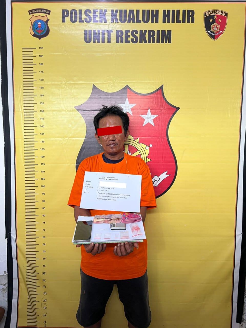 MPI, LABUHANBATU – Polsek Kualuh Hilir Polres Labuhanbatu yang di pimpin AKP Samsul Bahri Dalimunthe SH MH, berhasil menangkap seorang pria diduga sebagai pengedar narkotika jenis sabu di rumahnya, di Tanjung Leidong, Kec. Kualuh Leidong, Labuhanbatu Utara (Labura), pada Kamis pagi (13/11/2025) sekira pukul 08.45 WIB.