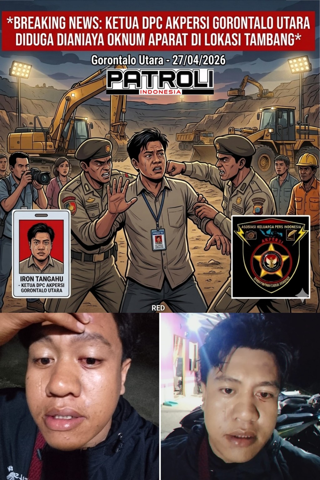 MPI, Gorontalo Utara – Insiden mengejutkan menimpa Ketua DPC AKPERSI Gorontalo Utara, Iron Tangahu, yang diduga mengalami tindakan kekerasan oleh oknum aparat saat berada di lokasi pertambangan, pada Senin 27 April 2026.