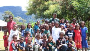 “Selamat siang, selamat hari Minggu, Shalom dan salam sejahtera bagi kita semua. Tujuan kami datang ke sini adalah untuk menjenguk Bapak, Mama, dan anak-anak semua yang sedang mengungsi dari Distrik Sinak. Kami dari Kodim membawa sedikit Berkat sembako sebagai tanda kepedulian dan kasih sayang Kodim 1714/PJ kepada keluarga besar di sini,” ucap Dandim.