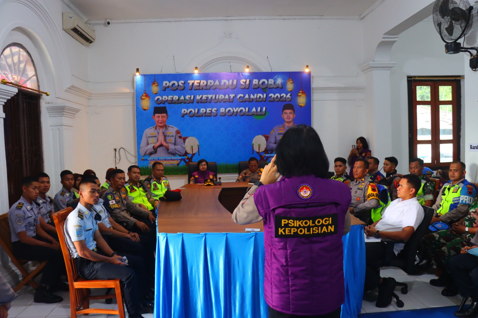 MPI, Boyolali – Dalam rangka mendukung kesiapan personel dalam pelaksanaan Operasi Ketupat Candi 2026, Tim Bagian Psikologi SSDM Mabes Polri melaksanakan kunjungan sekaligus memberikan pelatihan bertajuk “Mental Sehat, Kerja Hebat” kepada personel yang bertugas di Pos Terpadu Boyolali, Senin (16/3/2026).