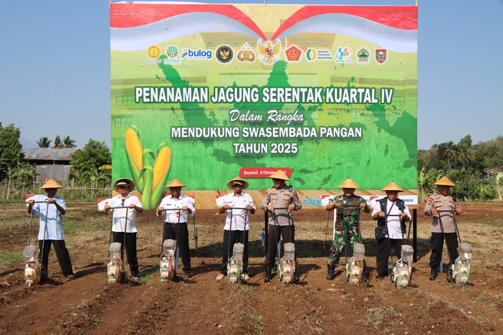 MPI, BOYOLALI – Sebagai upaya nyata mendukung program pemerintah dalam mencapai swasembada pangan nasional tahun 2025, Kapolres Boyolali AKBP Rosyid Hartanto, memeimpin langsung kegiatan pertanian yang tekenal dengan penanaman jagung secara serentak. Kegiatan ini berlangsung, di Desa Karangkepoh di Kecamatan Karanggede, Kabupaten Boyolali, pada Rabu pagi tanggal 8 Oktober 2025, dari pukul 07.30 hingga 08.15 WIB.