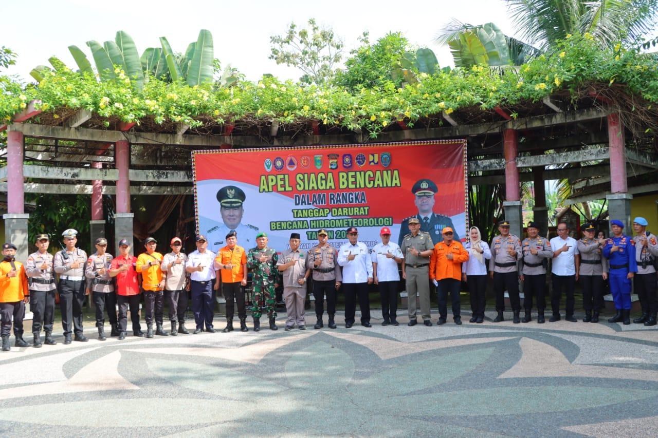 MPI, Tanggamus – Polres Tanggamus bersama Pemerintah Kabupaten Tanggamus, BMKG, Basarnas, dan sejumlah instansi terkait serta para relawan melaksanakan apel siaga dan simulasi tanggap bencana Hidrometeorologi di Pantai Muara Indah, Kota Agung, Rabu (5/11/2025).