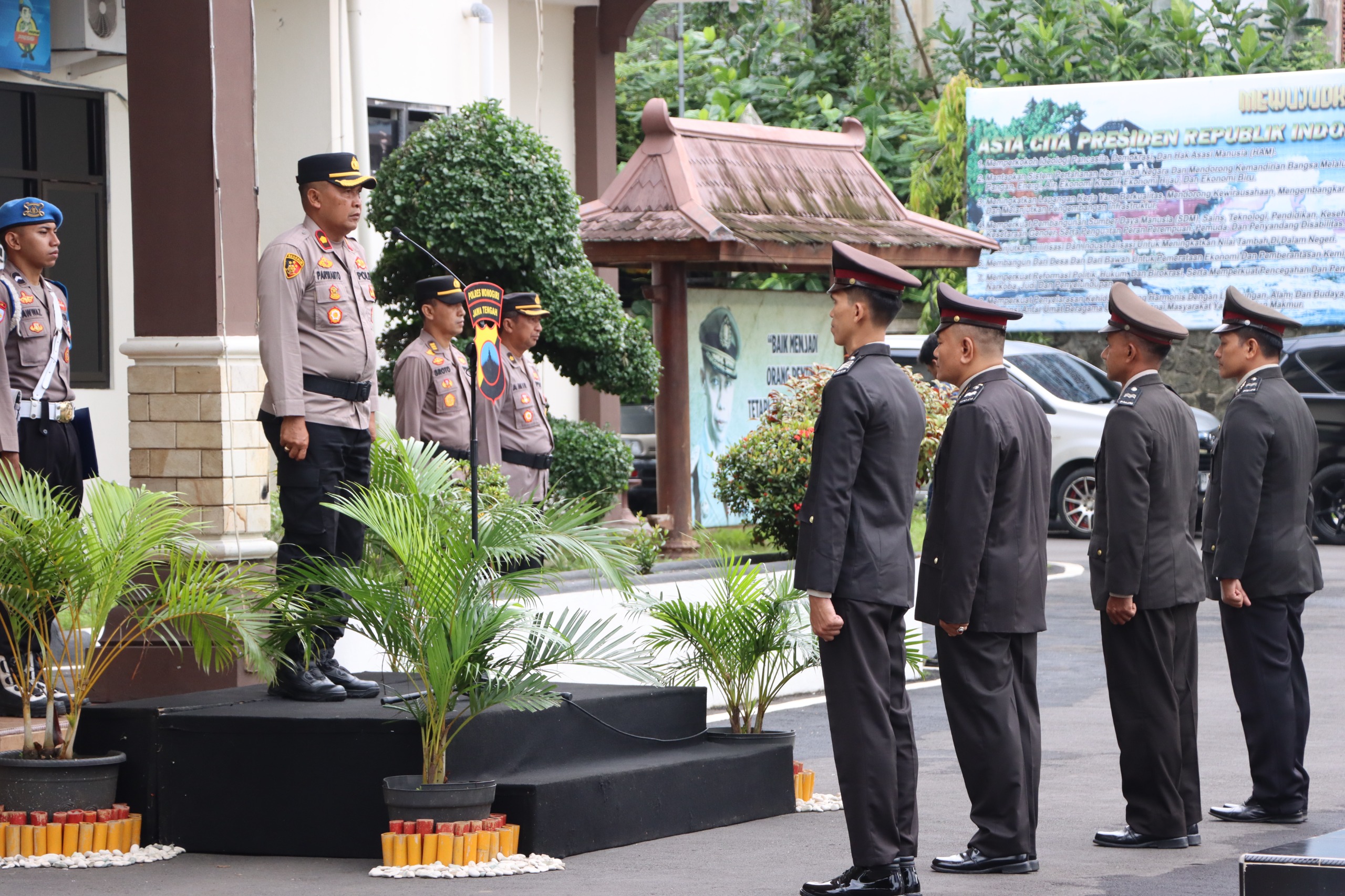Upacara tersebut dipimpin langsung oleh Wakapolres Wonogiri Kompol Parwanto, S.H., M.H., selaku Inspektur Upacara, serta diikuti oleh Pejabat Utama Polres Wonogiri, Kapolsek jajaran, perwira staf, personel Polres Wonogiri, hingga ASN Polri.
