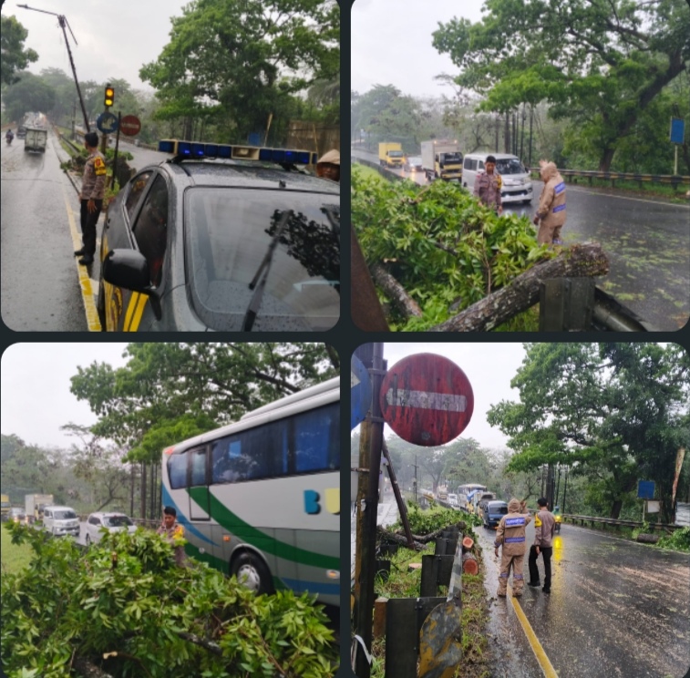 “Akses jalan sempat terhambat, namun kini sudah kembali normal. Semua material pohon tumbang berhasil dibersihkan dengan cepat,” kata Kompol Husen Sujana.