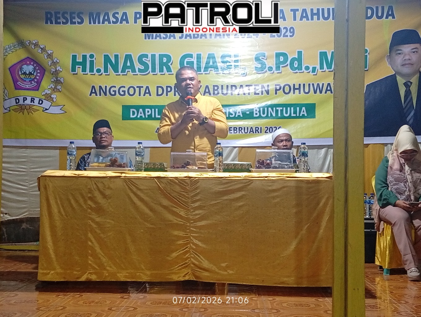 MPI, Pohuwato – Anggota DPRD Kabupaten Pohuwato, Nasir Giasi, mengadakan pertemuan di Desa Teratai sebagai bagian dari Reses Masa Persidangan Kedua Tahun 2026 untuk periode 2024 – 2029, Kegiatan ini bertujuan untuk menjadi wadah dialog langsung antara wakil rakyat dan masyarakat, guna menyerap serta memperkuat aspirasi warga di Daerah Pemilihan “Dapil” I Marisa–Buntulia, Sabtu 7 Februari 2026.