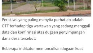 “Kades yang menawarkan Imbalan tutup mulut dengan uang senilai tertentu, lalu diterima oleh 3 orang rekan wartawan di lokasi pertemuan yang telah ditentukan oleh Kades. Itu mah jebakan”. Tegasnya.