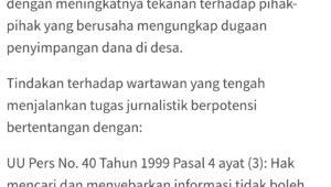 Dugaan pemerasan jurnalis terhadap Kades Wonokerto yang dituduhkan ke wartawan yang sedang bertugas itu jelas ilegal. Upaya mengintimidasi dan intervensi yang dilakukan Aparat Penegak Hukum (APH) kepada awak media itupun terindikasi adalah upaya suap Kades yang diduga Gratifikasi.
