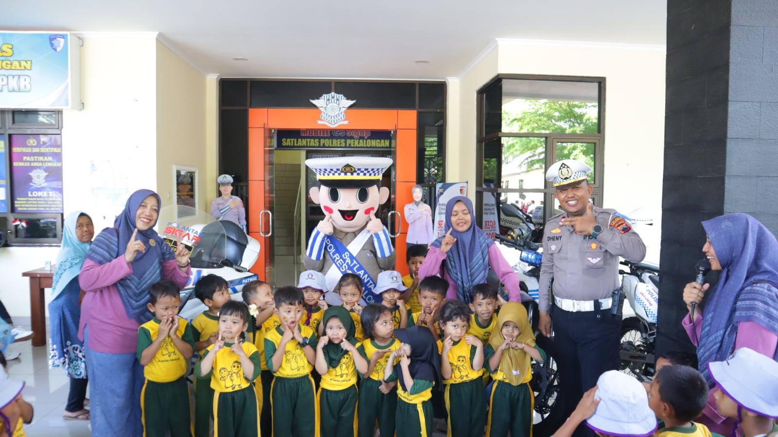 Rombongan anak-anak didampingi Kepala Sekolah dan Guru Pendamping disambut langsung oleh Kanit Kamsel Satlantas Polres Pekalongan, Ipda Deny Saputra, S.H., beserta anggota Sat Lantas.