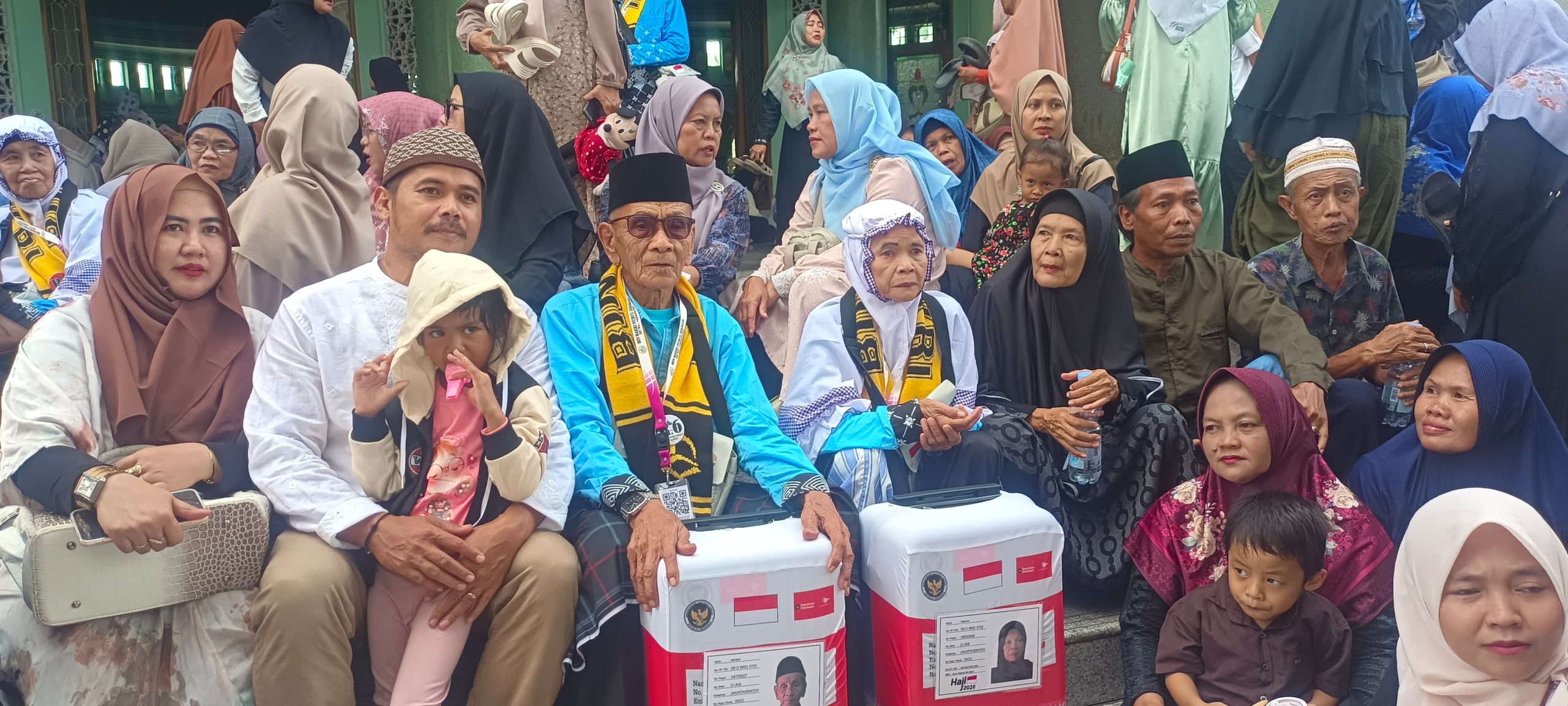 Sejak pagi, para jamaah bersama keluarga telah memadati halaman masjid terbesar di Kota Tangerang tersebut. Mereka menanti kehadiran Gubernur Provinsi Banten Andra Soni yang dijadwalkan melepas secara resmi keberangkatan jamaah haji tahun 1447 Hijriah / 2026 Masehi dari Provinsi Banten.