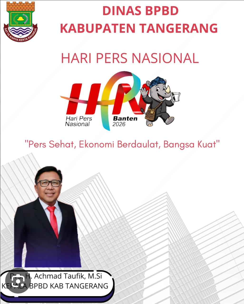 MPI, Tangerang – Ucapan Selamat Hari Pers Nasional 2026, dari Kepala BPBD Kabupaten Tangerang Drs. H. Achmad Taufik, M.Si. Jumat 6 Februari 2026.
